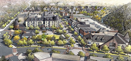Enter the proposal for Lane Parke, a preliminary rendering of which is shown here (courtesy Birmingham News). The developer originally built the Mountain Brook Shopping Center in the 1950s, as well as the Park Lane Apartments. Considered part of the Village, these properties lie a block from the historic core. Under the proposal these are replaced with a new, pedestrian-oriented mixed-use development with housing, shops, boutique hotel, parking garage, and retail.
