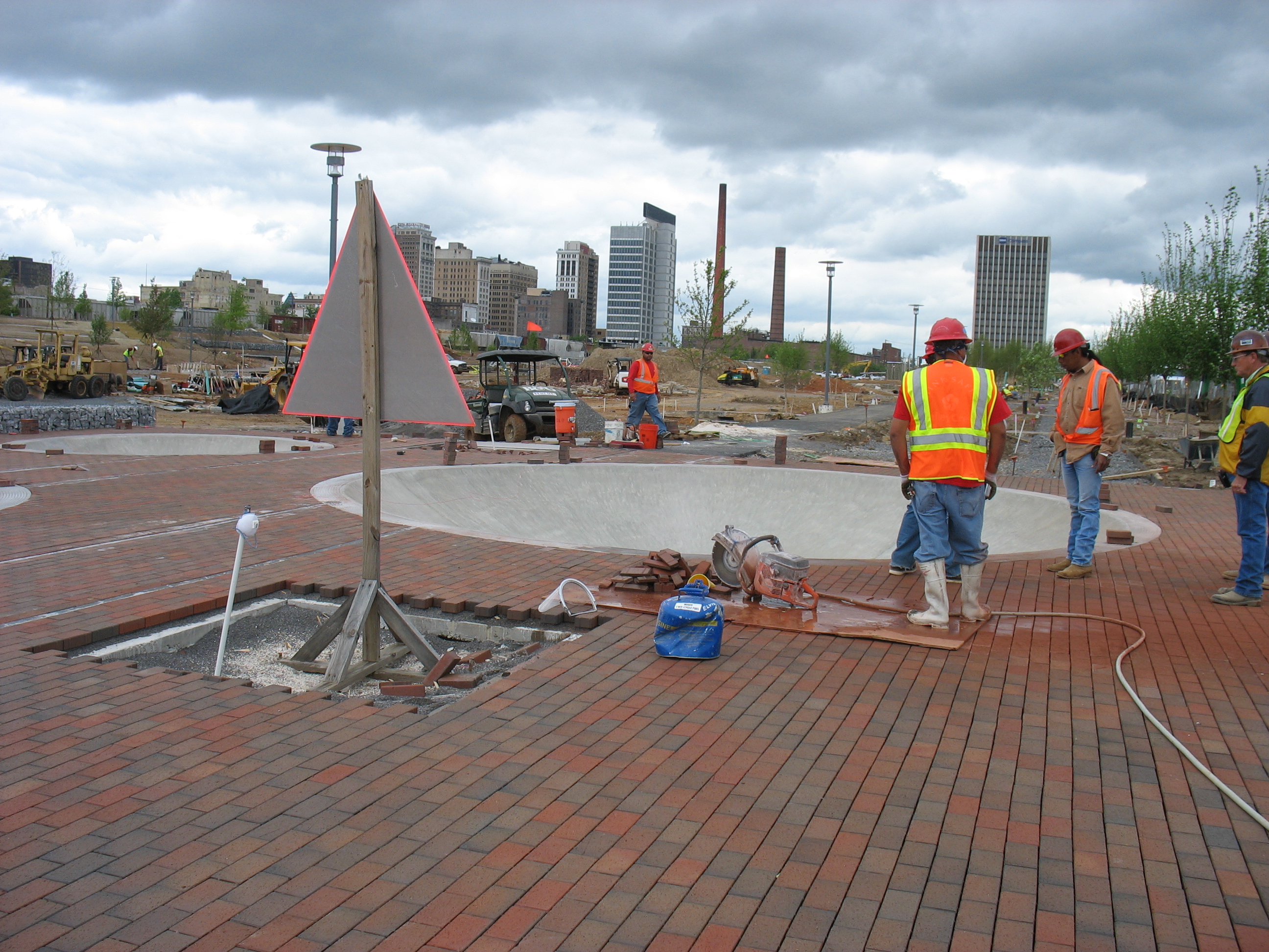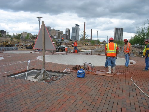 2. Good report and images. It’s moved along well since I toured April 10, and no water was visible then. Your view of the skate plaza also shows off the genuine brick pavers (not tinted concrete) they sought out that are close to the originals (recycled in walls). Another element of authenticity. Especially like the last shot evoking how the park might be edged with urban life. Let’s hope the city musters the nerve to shape it well.