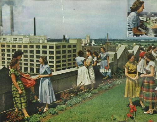 I couldn’t resist adding this photo from the December, 1953 edition of National Geographic, showing an early green roof on the top of the A.E. Staley Manufacturing Company, Decatur, IL: