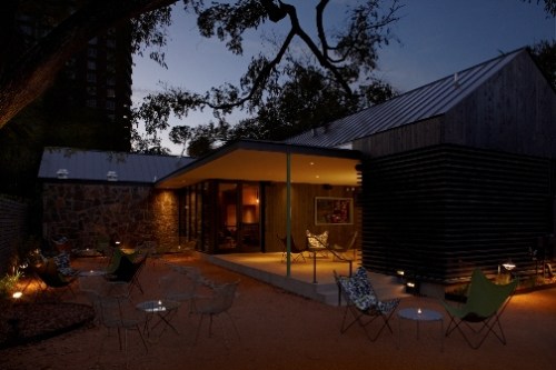 Back in Austin, I was stopped in my tracks by this new lounge that’s opened in a frayed, formerly residential fringe of downtown that’s undergoing a surge of redevelopment (think maybe Norwood or North Avondale for a comparison). It’s called Icenhauer’s, and it’s in an old house that looks very similar to Birmingham housing stock of the same vintage. At first glance it looks like someone just “fixed it up” with a new coat of paint and some yard work. But look closer, and the sophistication of the renovation startles.