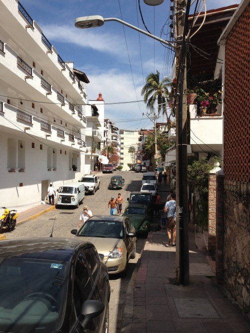 A couple of weeks ago I had the good fortune to travel to the Mexican city of Puerto Vallarta for a few days. While much of the trip was spent on the beach and sampling delicious food (no complaints), there was time to explore at least a little of the town. Above is an ordinary street in the historic center; the cobbled roadways and stone paved sidewalks are typical, and go a long way towards creating a pleasant walking environment. Of course the tropical foliage and year-round potted flowers don’t hurt either.