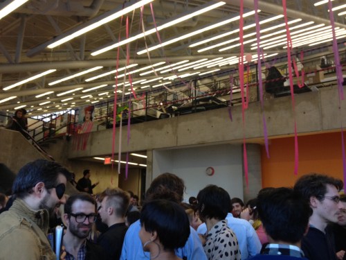 Back down the street at Harvard Square, the Graduate School of Design was holding an open house party (above) for prospective students in its main building, Gund Hall. Designed by John Andrews in 1972 in a sort of soft-brutalism style, it was to accommodate a maximum of 300 people. That number now approaches 900 and if it felt like it was bursting at the seams already in my tenure 20 years ago–it now has reached a new crisis. Design students need some space!