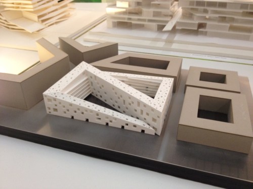 Despite that lack of space, GSD students continue to conceive provocative designs in studios based not just in Cambridge but around the world. A student model was on display in the lobby, above. Student projects can be great challenges to how we conventionally think about buildings and cities.
