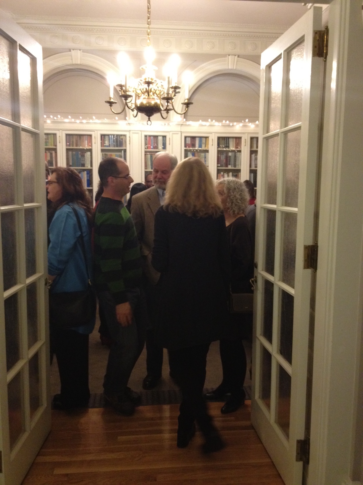What better city in which to enjoy a literary salon than the famously well-read Boston? Above is an event at Beacon Press on Beacon Hill, in a lovely old building. Filled with writers, poets, and editors (and a few hangers-on like your author), it was a reminder of the intellectual fabric that supports the physical fabric of this city.