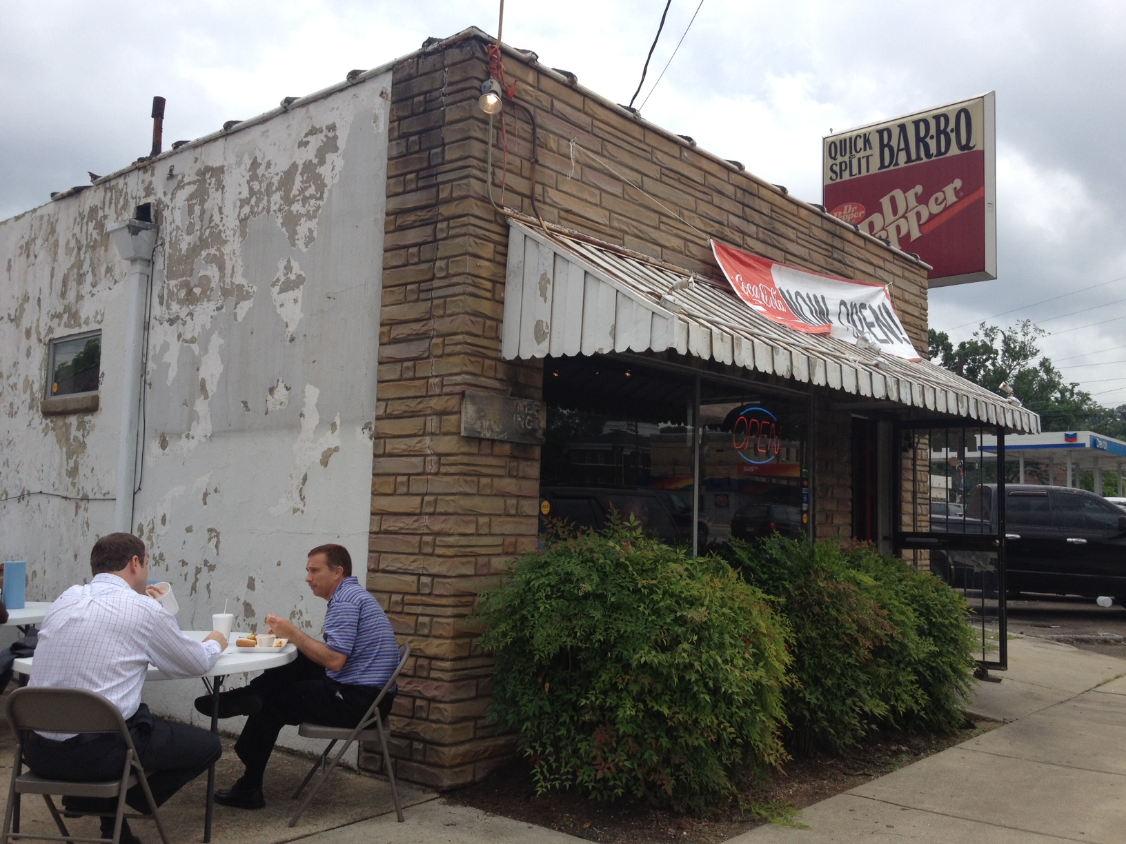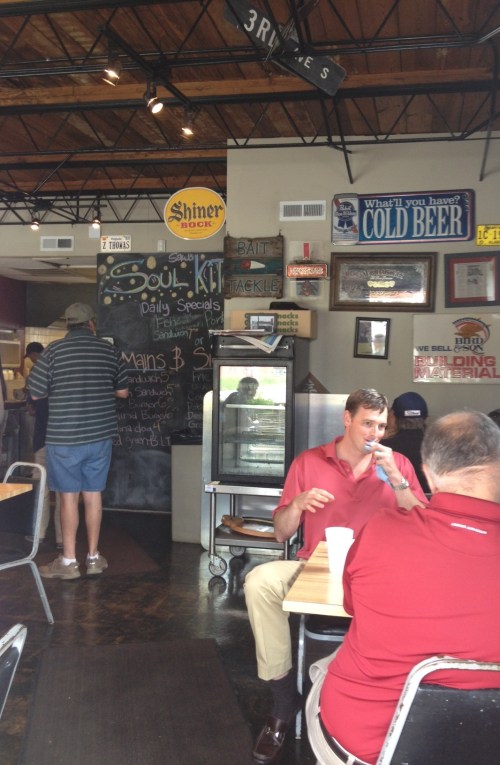 A lunchtime visit to the new Saw’s Soul Kitchen in downtown Avondale (200 block of 41st Street South, above) was a chance to muse over the momentum in this part of town (an historic working class commercial center that served the surrounding bungalows and industrial concerns). While longtime gay bars (no longer open) drew patrons into Avondale for decades, it wasn’t until Bottletree Cafe opened in 2006 that the neighborhood started getting noticed more broadly. In the last couple years, Parkside Cafe and Avondale Brewery Company have helped make Avondale a multi-faceted nightlife destination [a few professional firms and residential lofts have also been quietly moving into the commercial district]. It was perhaps a matter of time before a new daytime restaurant would open; Saw’s is a twist on the popular original location in Edgewood. Determined to maintain a true “hole-in-the-wall” appearance, the layers of peeling paint, perma-stone, and 1970’s-era Dr. Pepper sign are all intact. What’s new is the great food and outdoor seating–perhaps the first time in history that anyone has sat outside in downtown Avondale to be served lunch.