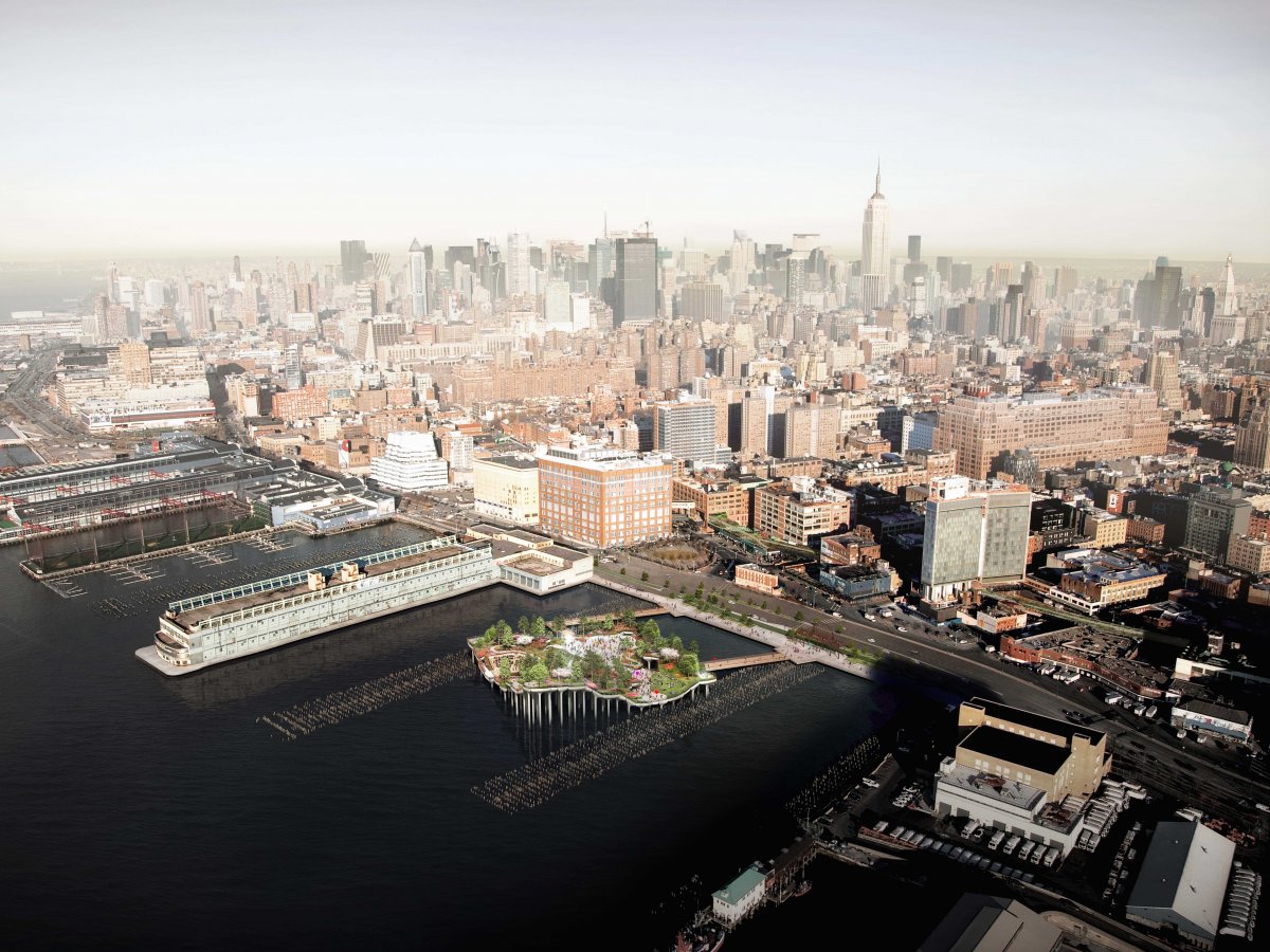 Now, construction is underway on a new Pier 55 park (rendering above–designed by Heatherwick Studio) which has been controversial due to lack of public input and lack of homage to the maritime history of the place (the entire cost of the new park is almost completely financed by the billiionaire Barry Diller). While the rendering does show the skeletal Pier 54 entrance remaining, it’s difficult to confirm this will actually happen.