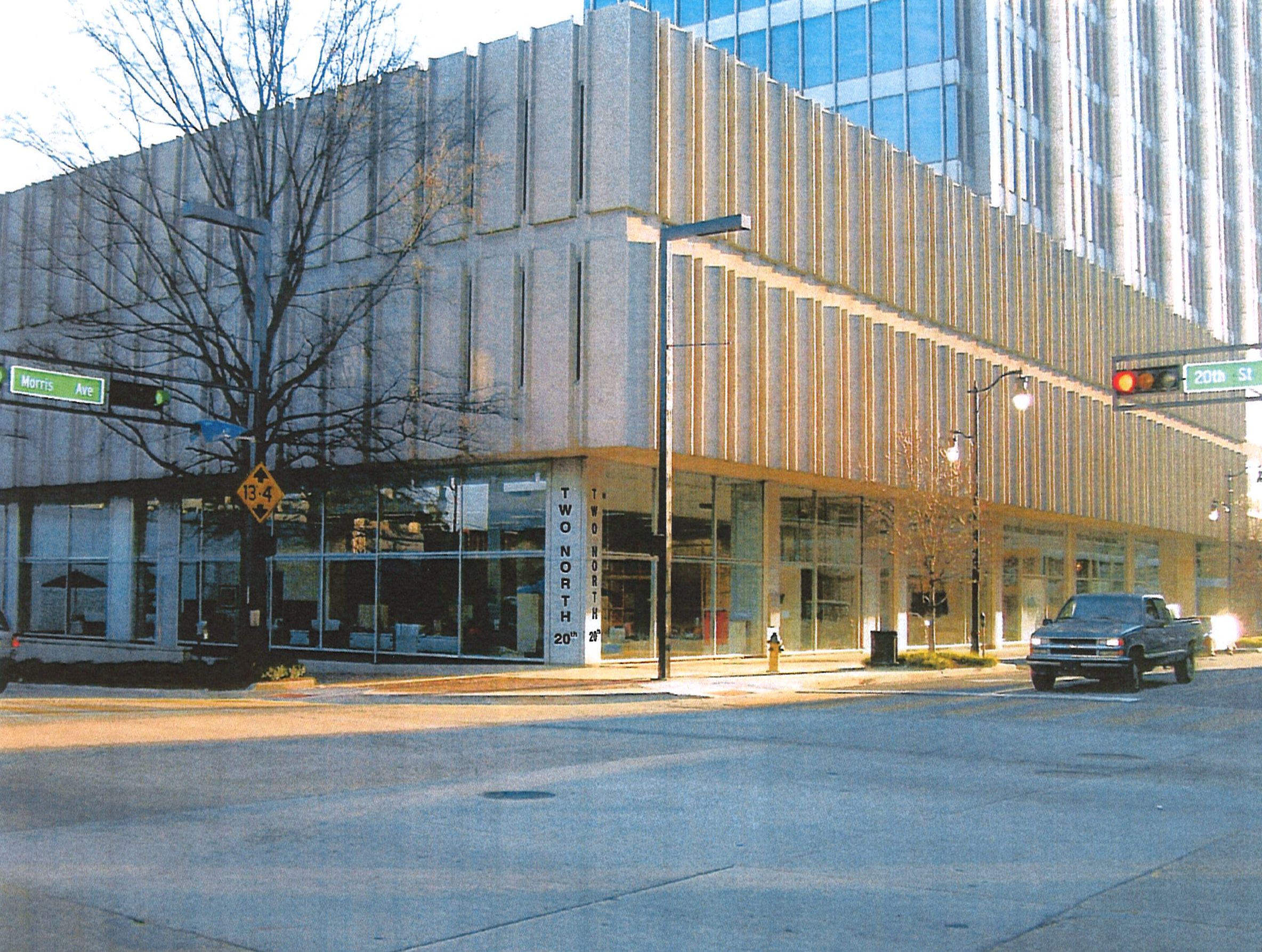 Next up in the denial section was the above–a proposed new illuminated sign at the corner pier of Two North Twentieth, the former Bank for Savings Building at the corner of Morris Avenue and 20th St. North. This iconic building from 1962 is the City’s most prominent example of International Style architecture, following in the footsteps of the groundbreaking Lever House on Park Avenue in New York (1952), and a decade of countless copies across the nation (and world). It has never had any signage identifying the building near ground level (many know it from it’s giant, illuminated advertising marquee on the roof). Not only is the proposed signage uninspired, but it doesn’t even match the building’s logo (itself a tepid, uninspired moniker): “20th” is not spelled out like “Twentieth” which is the actual name. The committee sent this one back to the drawing board too. I hope that a cool, illuminated, and creative solution that works with the rhythm of the concrete panels on the second floor can be devised. This building and this corner need good signage, not haphazard non-design.
