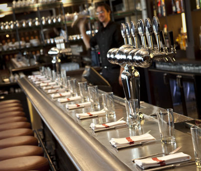 Back to Brick and Tin–while I’m not privy to the design plans (local firm Hendon and Huckstein has been engaged), the name reminds me of English or neo-English gastropubs. Helping revitalize the food environment in a country until recently not known for innovative cuisine, the gastropub refers to an older pub (which used to just serve beer, spirits, and snacks) which has been converted to serve full meals, often with a gourmet bent, moderately priced, and riffing on traditional English cuisine. In this country, it has a broader definition (as there are no real historic pubs to convert): a moderately priced restaurant with design cues taken from the UK’s typical pub, and where beer can take precedence over wine as the beverage of choice with dinner. An example is the new Againn gastropub in DC. Sitting at the long bar (or in booths) enjoying good food and beer at moderate prices within a charming, well-designed environment is the sort of thing we need more of here.