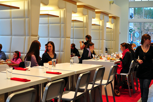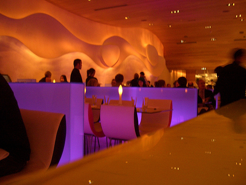 One last word (for now) on restaurant design: one of my favorite designers, Karim Rashid, was asked several years ago (actually 2001; I can’t believe it’s that long) to design the interior of Morimoto in downtown Philadelphia–a city which, like the UK, was not terribly known for its cuisine (Philly Cheese Steaks excepted). This is an incredible example of high-concept restaurant design, and an early innovator of integrated LED lighting (the booths and walls slowly change colors as you eat). It also inspired many other restaurants to open downtown, and now the restaurant scene in Philadelphia is transformed. Here’s to more options, better design, and new cuisines coming to town. And yes, I would love Karim Rashid to collaborate on a restaurant design with me someday. Right here in downtown Birmingham. (Morimoto pic courtesy bombtrack)