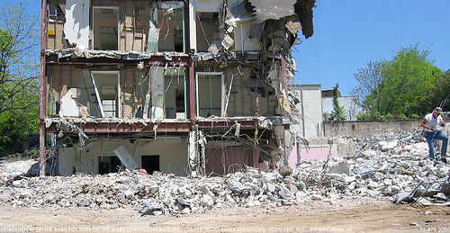 The City’s Design Review Committee conditionally approved demolition of an area just south of Railroad Park to prepare for construction of the new ball park of the Birmingham Barons. The area, pictured above, is four square blocks bounded by First Avenue South (facing the park) and Third Avenue South, and 14th and 16th Streets. The hatched buildings will be taken down; noticeably unhatched is the B&A Warehouse building at the corner of 16th and First Avenue, no longer part of the project.