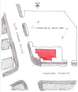 I found out at very late notice that a subcommittee of the Design Review Committee was meeting today at City Hall in a working session with representatives of Chick-Fil-A, to discuss a revised proposal for the prominent site at the corner of Highland Avenue and 20th Street South in the heart of Five Points South. As many already know, their previous proposal has been denied twice: once by Design Review, and once by the Appeals Board just a couple weeks ago.