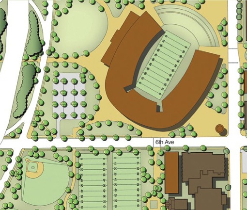 This morning at Design Review Committee, the new dual-branded hotel (Hilton Garden Inn and Home 2 Suites) along 2nd Avenue South between 17th and 18th Streets received approval for final materials (snapshot of rendered elevations above). This project, one block south of Railroad Park, will be the first hotel to rise in the Parkside neighborhood; the site is already cleared and construction should start soon. The materials are a combination of brick and stucco; the architect is Bradley, Schmidt & Carn from Dothan, AL. While the massing, color palette, and generic detailing are all scripted from Hilton’s playbook–with the result being a rather unmemorable composition–at least from an urban standpoint the facades come up to the sidewalk edges (with attractive landscaping by Birmingham’s Macknally Land Design) and the lobby lounges and cafes open to terraces facing the streets. The biggest disappointment is the large amount of surface parking in the rear which takes up half a city block–the City needs to do better creating shared, structured parking for the Parkside district so that each individual project isn’t forced to use valuable land for this purpose.