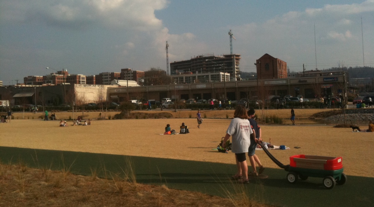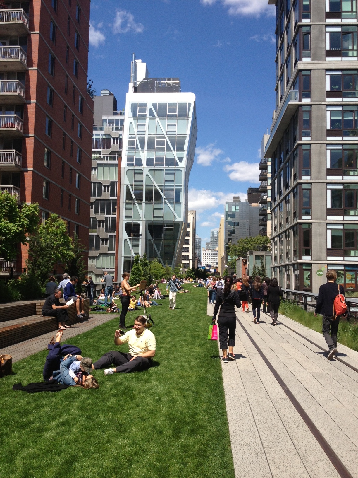 Finally, no trip to New York is complete without visiting the High Line park–shown above around 22nd Street looking north. On a picture-perfect Friday lunchtime, families are playing in the grass, locals and tourists are eating sandwiches, an artist is painting at an easel—and new office and apartment towers frame the stunning views. It’s an urban vision that’s so beautiful, it’s hard to believe it was an abandoned, weedy, rusty set of tracks just a few years ago. Railroad Park, anyone?