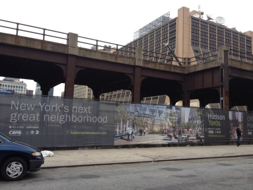 This post looks at last week’s trip to New York, focused on midtown and financial district locales. After many years of waiting, the Hudson Yards Redevelopment Project on midtown’s far west side at the Hudson River is underway (above at 10th Avenue and 3oth Street), with developers working on a first phase of mixed-use office, housing, and retail constructed in leased air rights over MTA‘s vast rail yards. This ambitious plan includes an extension of the “7” subway train, thousands of new housing units, and large amounts of public space. A virtual no-man’s land (perhaps the last such area in Manhattan) promises to be completely transformed. You can see the development proposal here.