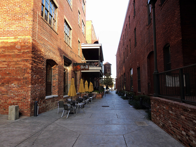 Knowing how hard it’s been to assemble property (and two owners are still holding out at either corner of First Avenue), this siting may not have had much flexibility. If indeed the ballpark ends up as shown in the graphic, it’s essential that the design handles the outfield edge creatively, so that it animates that frontage even when the ballpark is dark and empty. Additionally, it would be wonderful if some of the old warehouses and alleyways in the adjacent “Parkside” district could be retained and rejuvenated (the Alley off Tallapoosa Street in downtown Montgomery, pictured above, is a direct result of private investment around their riverfront ballpark). A combination of historic restoration and new construction would be a great mix for the new district (which we also hope will have sharp, creative district branding–see our previous post on this).