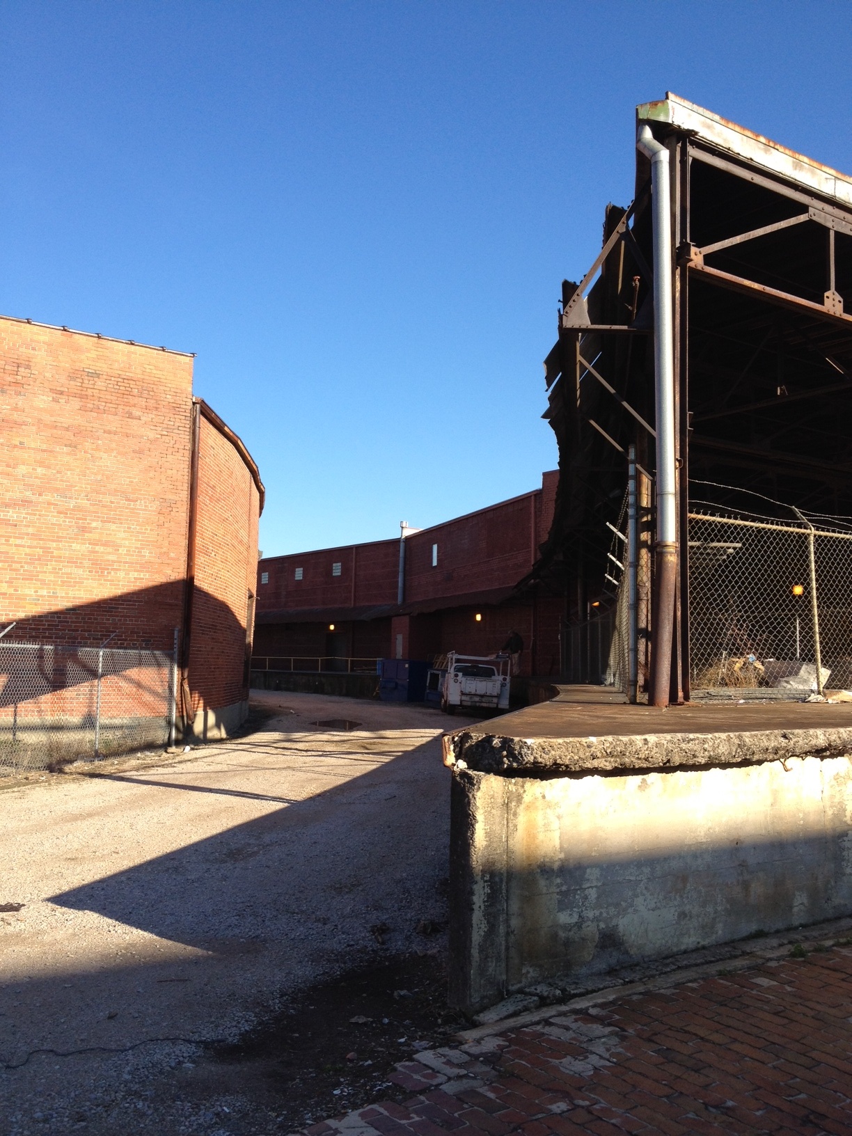 In a central city laid out on a relentlessly orthogonal grid, it’s downright shocking to see this curving alley way between two warehouses (above), which followed the curve of a rail spur. Goods could be loaded directly onto rail cars from the warehouse docks. Wouldn’t it be great if the new ball park facility had a graphic display somewhere with images and history relating to this neighborhood and its (unsung) relationship to the better-known areas adjacent to it?