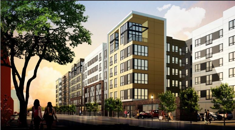 As a consolation, the developers do state that, while no retail is being offered, there is ground floor space behind roll-up glass doors suitable for food trucks; perhaps this same space can be finished out for retail in the future. In the rendering above (along 16th Street) it’s possible to see these openings in the middle-to-far distance. For a mid-rise, dense urban project, the architectural massing and materials are better than some, but the street level leaves, unfortunately, much to be desired.