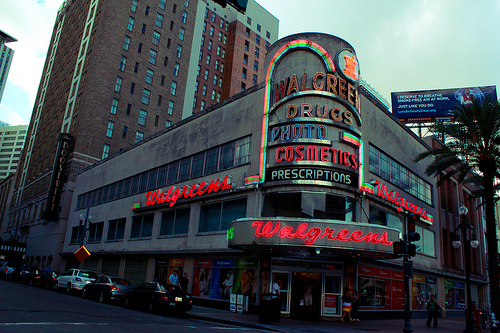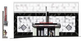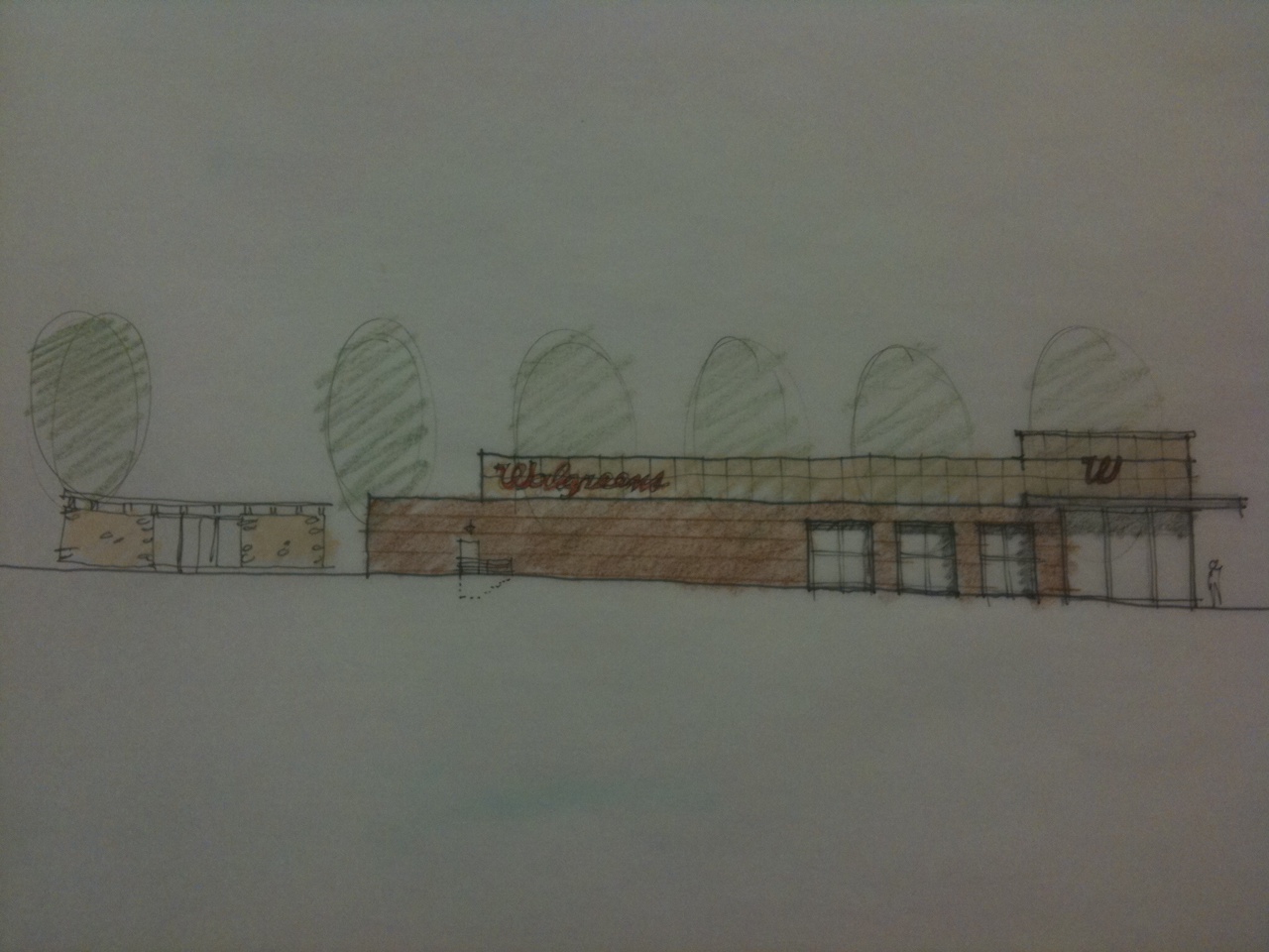 [Thanks to Blackmon Rogers for allowing us to show the elevation sketches; Oak Park Walgreens pic courtesy of Walgreens]